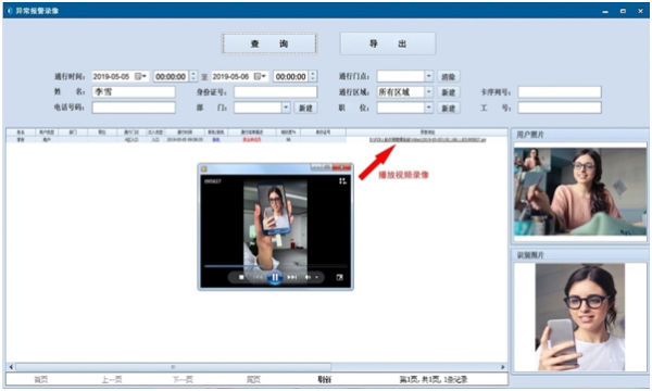 有异常识别结果自动报警与录像功能,如黑名单报警录像、照片攻击报警录像、工地未戴安全帽报警录像等。